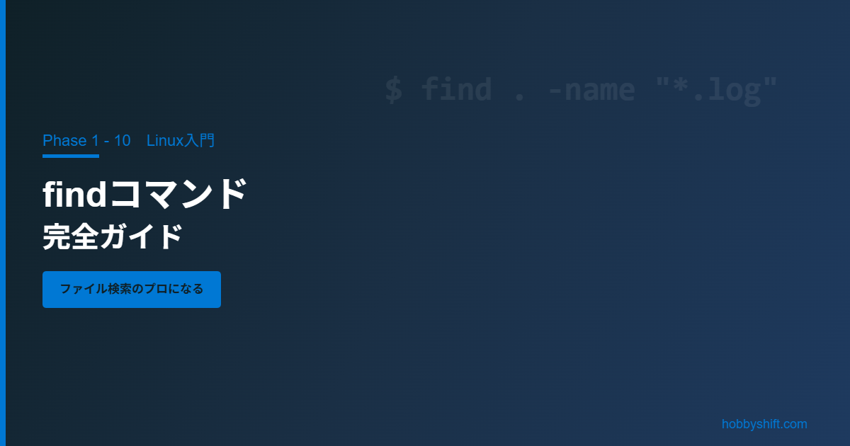 💡 find と grep の違い:find はファイル自体を探すコマンドです。ファイルの中身を検索したい場合は grep を使います。