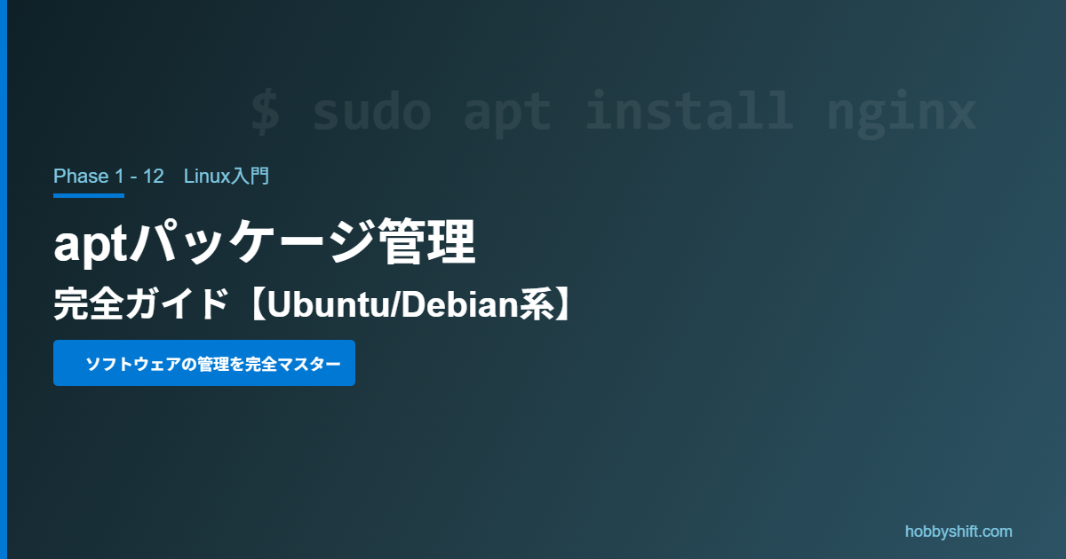 この記事では、Ubuntu / Debian系Linuxのパッケージ管理コマンド apt を完全解説します。インストール・更新・削除の操作から、リポジトリの仕組みまでわかりやすく説明します。