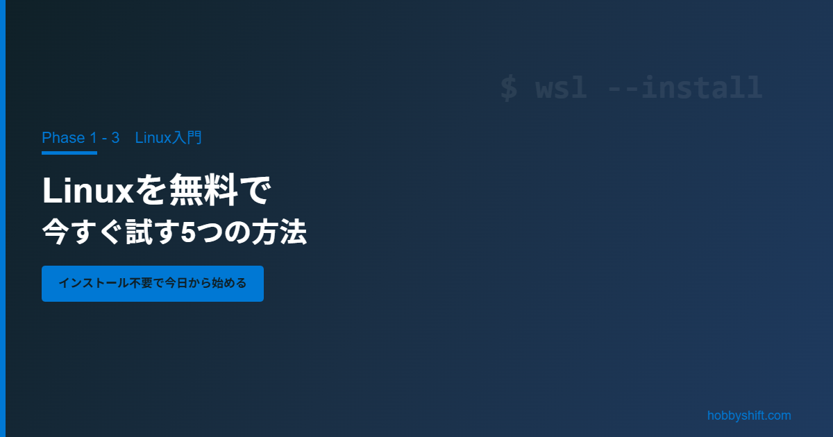| ブラウザ上でLinuxを試す(JSLinuxなど) | ★☆☆ | ★☆☆ | インストール不要。お試し程度 |