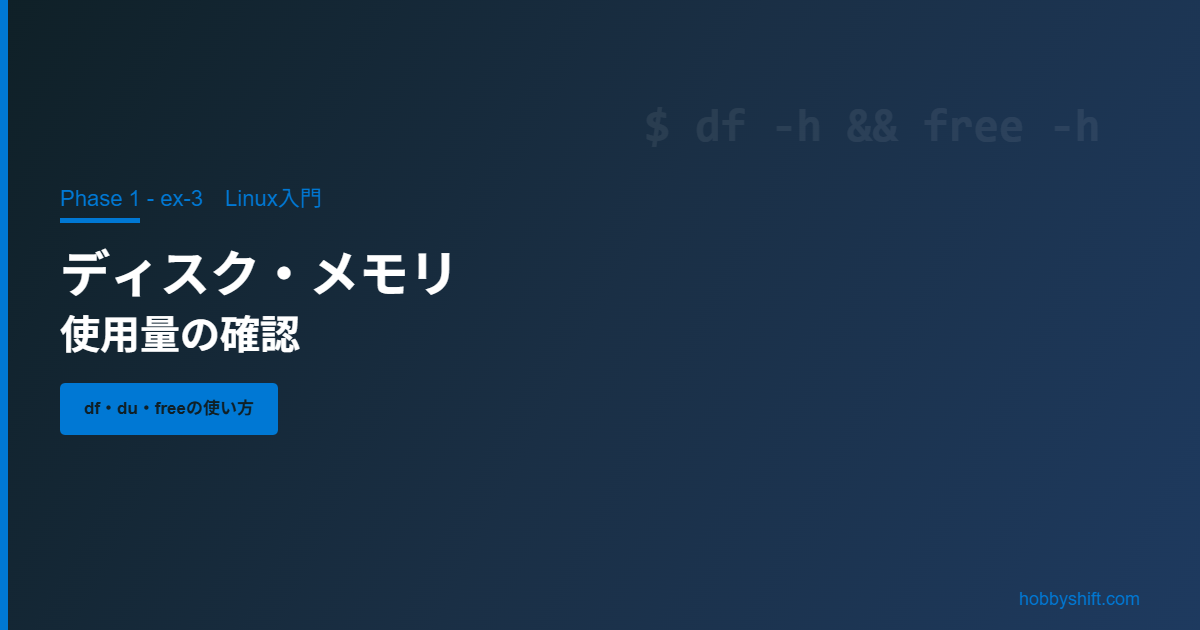 サーバー管理では「ディスクが満杯でサービスが停止」「メモリ不足で動作が遅い」といったトラブルが頻繁に発生します。この記事では、ディスクとメモリの使用量を確認するコマンドを解説します。