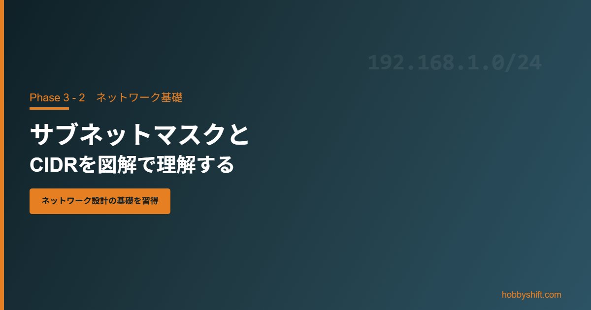 「192.168.1.0/24ってどういう意味?」——サブネットマスクとCIDRはネットワーク設計の基礎です。最初は難しく見えますが、考え方を理解すれば一気にスッキリします。