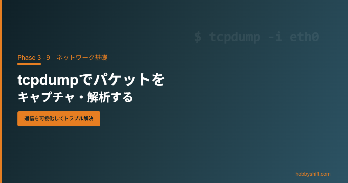 「通信はしているのに何か変」「ファイアウォールの設定が正しいか確認したい」——tcpdumpはネットワークを流れるパケットをリアルタイムでキャプチャ・解析するコマンドです。インフラエンジニアの必須ツールです。