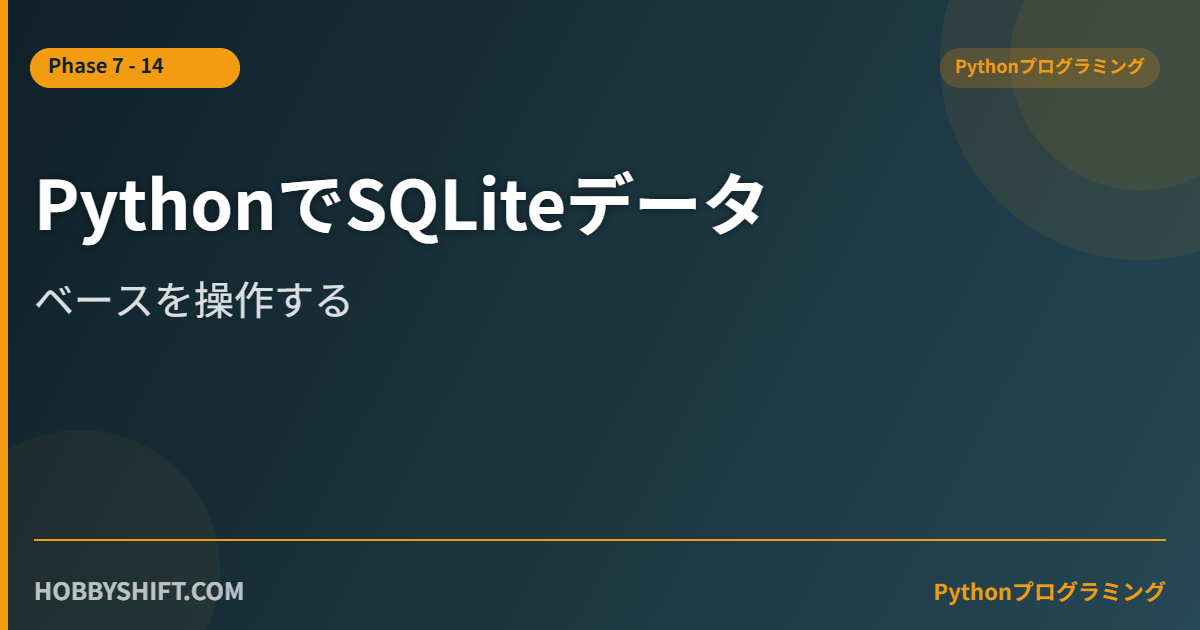 PythonでSQLiteを使ったデータベース操作を解説します。SQLiteはファイル1つで動くデータベースで、Pythonに標準で含まれています。