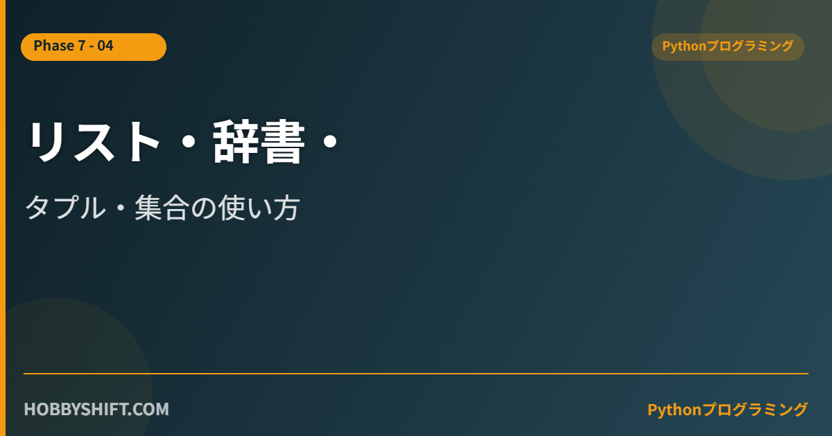Pythonの主要なデータ構造であるリスト・タプル・辞書・集合を解説します。使い分けを理解することがPython上達の近道です。