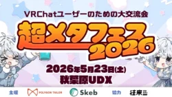 VRユーザー、VRクリエイター、VR関連企業が集まる大交流イベント『超メタフェス2026』が、5月23日(土)に秋葉原UDXで開催されます。前回よりも会場が拡大され、即売会や企業展示、ステージイベントなど、見どころがさらにパワーアップしているみたいですよ!