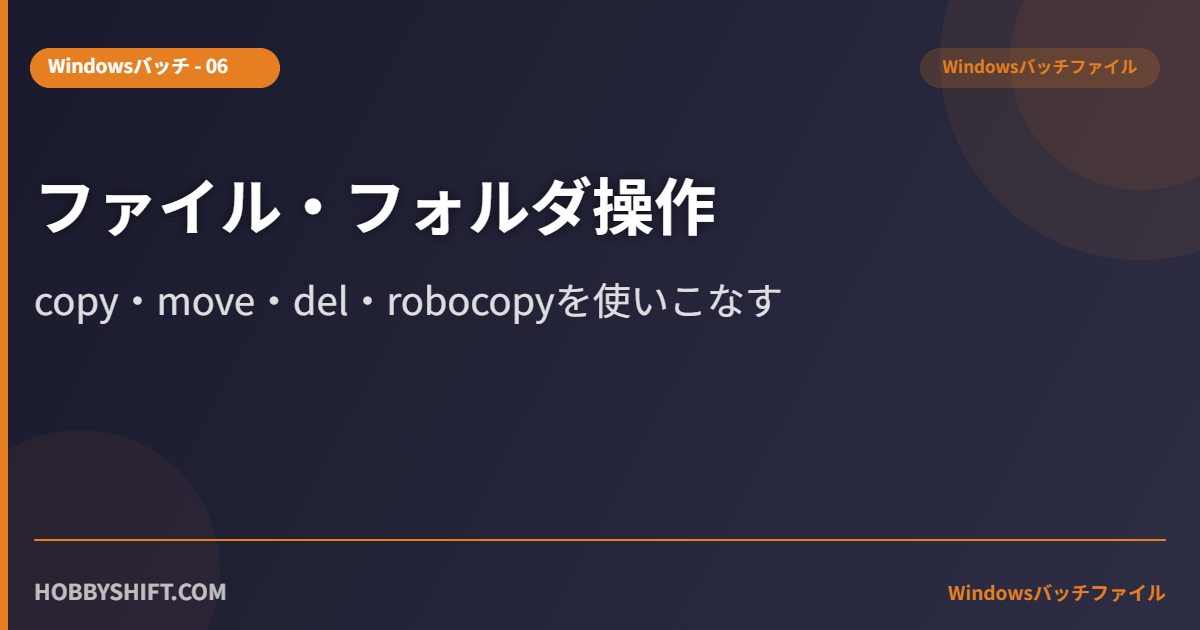 ファイル・フォルダ操作はバッチファイルの主要な用途です。copy・move・del・robocopyを解説します。