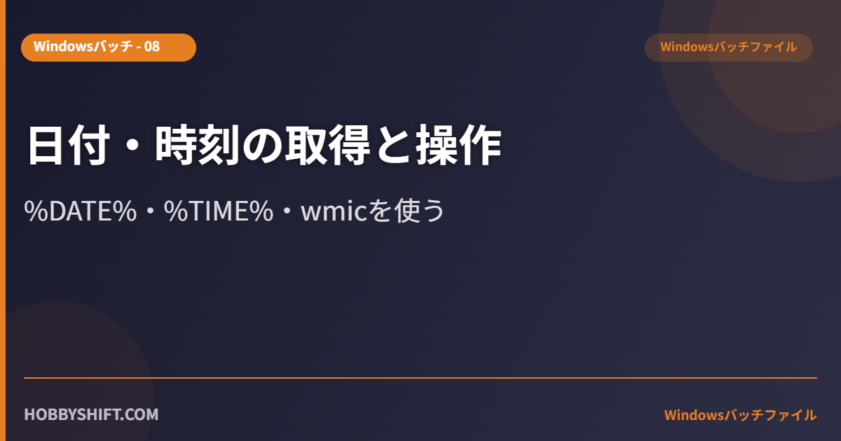 バッチファイルで日付・時刻を取得・整形・利用する方法を解説します。ログファイルやバックアップのタイムスタンプ命名に必須のスキルです。
