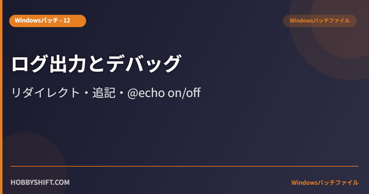 バッチファイルのログ出力とデバッグテクニックを解説します。リダイレクト・追記・@echo on/offを使いこなして効率よくデバッグしましょう。