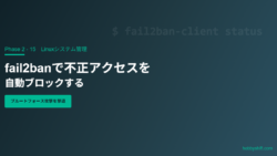 ファイアウォールでポートを制限しても、公開ポートへのブルートフォース攻撃は防げません。fail2banはログを監視して攻撃元IPを自動的にブロックするツールです。fail2banのインストールと基本設定⚠️ 設定は必ず jail.local...