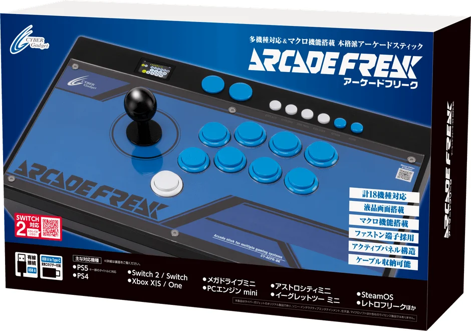 この『アーケードフリーク』、Nintendo Switch 2やPC、PS5といった最新ハードから、メガドライブミニやPCエンジン mini、レトロフリークみたいな人気のレトロゲーム機まで、18機種ものゲーム機に対応しているんですよ。まさに「現行からレトロまで1台でOK」な、頼れる相棒って感じです!