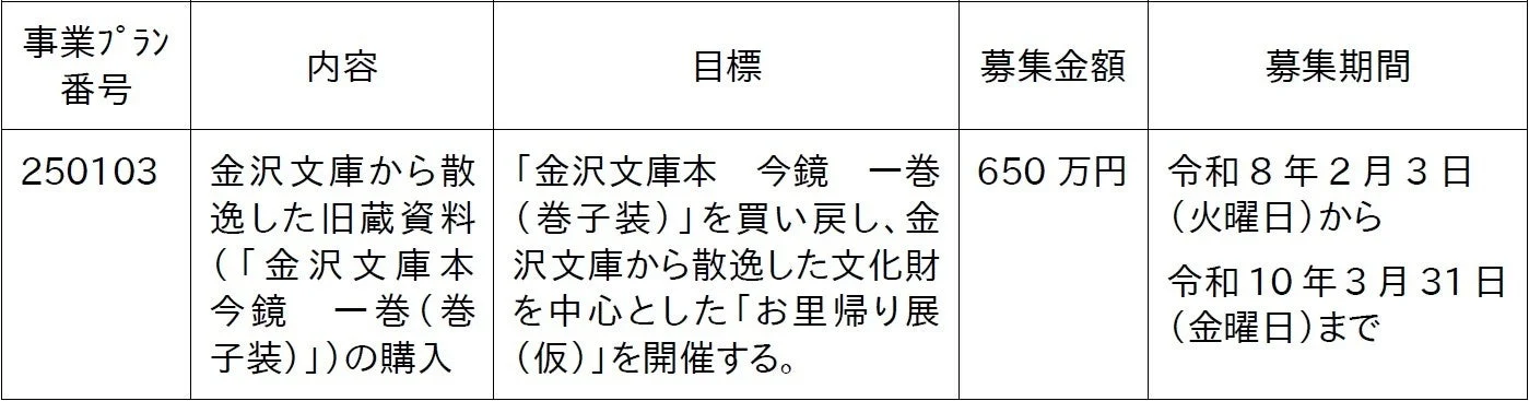 募集期間内に目標金額に届かなかった場合でも、寄付金は今回の事業か、金沢文庫の指定施設への寄付として使われるそうなので、安心してください。