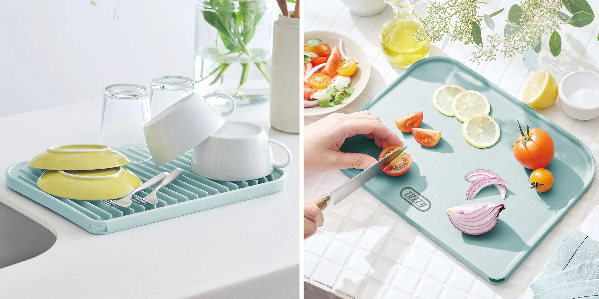 まな板と水切りトレーが一体に!1枚2役でキッチンがスッキリ