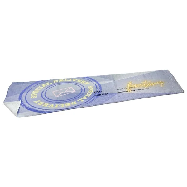ベースはホワイトで全面プリントに対応してるんで、デザインの自由度もかなり高いっす。約20×110cmっていう実用的なサイズ感も良いですよね。首にかけたり広げたりしても映える仕上がりになるみたいです。