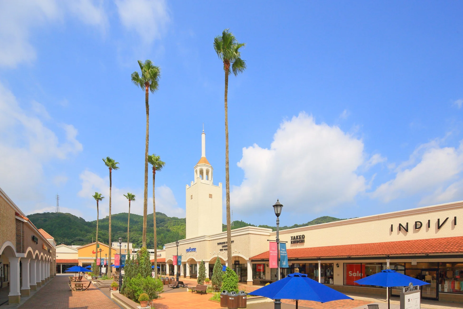 鳥栖プレミアム・アウトレットは、国内外の人気ブランド約170店舗が揃う九州を代表するショッピングリゾートです。アメリカ・カリフォルニア州南部の街並みをイメージした、白壁や暖色系の屋根瓦が美しい施設で、一日中アウトレットショッピングを楽しめますよ。