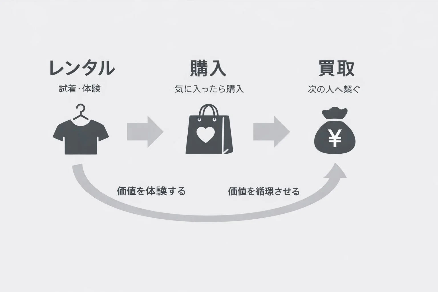 もしレンタル中にその服が気に入ったら、そのまま購入できるんですよ。しかも、購入価格からはすでに支払ったレンタル料金が差し引かれる仕組みになっているので、すごく良心的ですよね。これは「体験の延長として所有する」という考え方を大切にしているからだそうです。