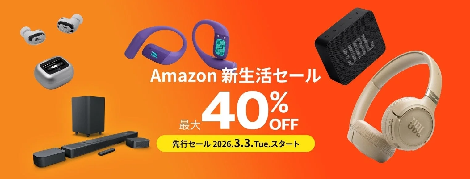 今回のセールは、2026年3月3日(火)から3月9日(木)まで(先行セール期間も含む)JBL公式Amazon店で開催されてるみたいですよ。結構いろんな製品が対象になってるみたいなので、ぜひチェックしてみてくださいね!