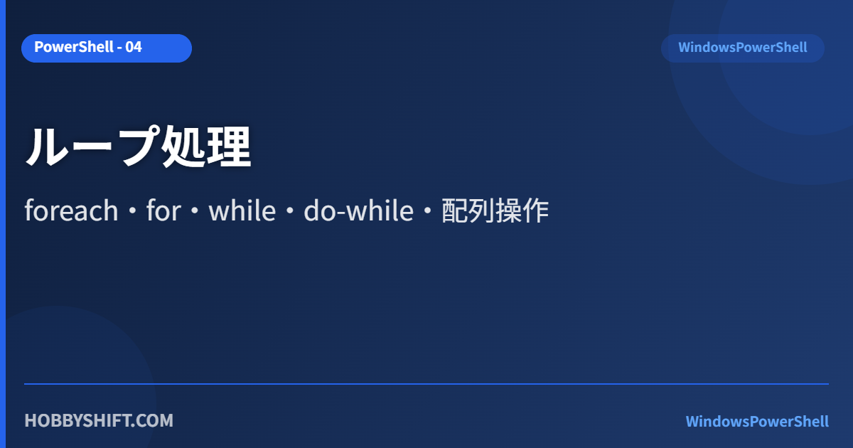 PowerShellのループ処理(foreach・for・while・do-while)を解説します。コレクション操作はPowerShellの真骨頂であり、バッチファイルのfor文より直感的に書けます。