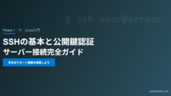 Linux入門 SSHキー認証の仕組みと設定方法 「VPSを借りたけど、どうやって接続するの?」「パスワード認証は危険って聞いたけど、公開鍵認証ってどうやるの?」この記事では、LinuxサーバーへのSSH接続の基本と、セキュリティの高い公開鍵認証の設定方法を完全解説します。インフラエンジニ... 2026.03.06 2026.03.15 Linux入門